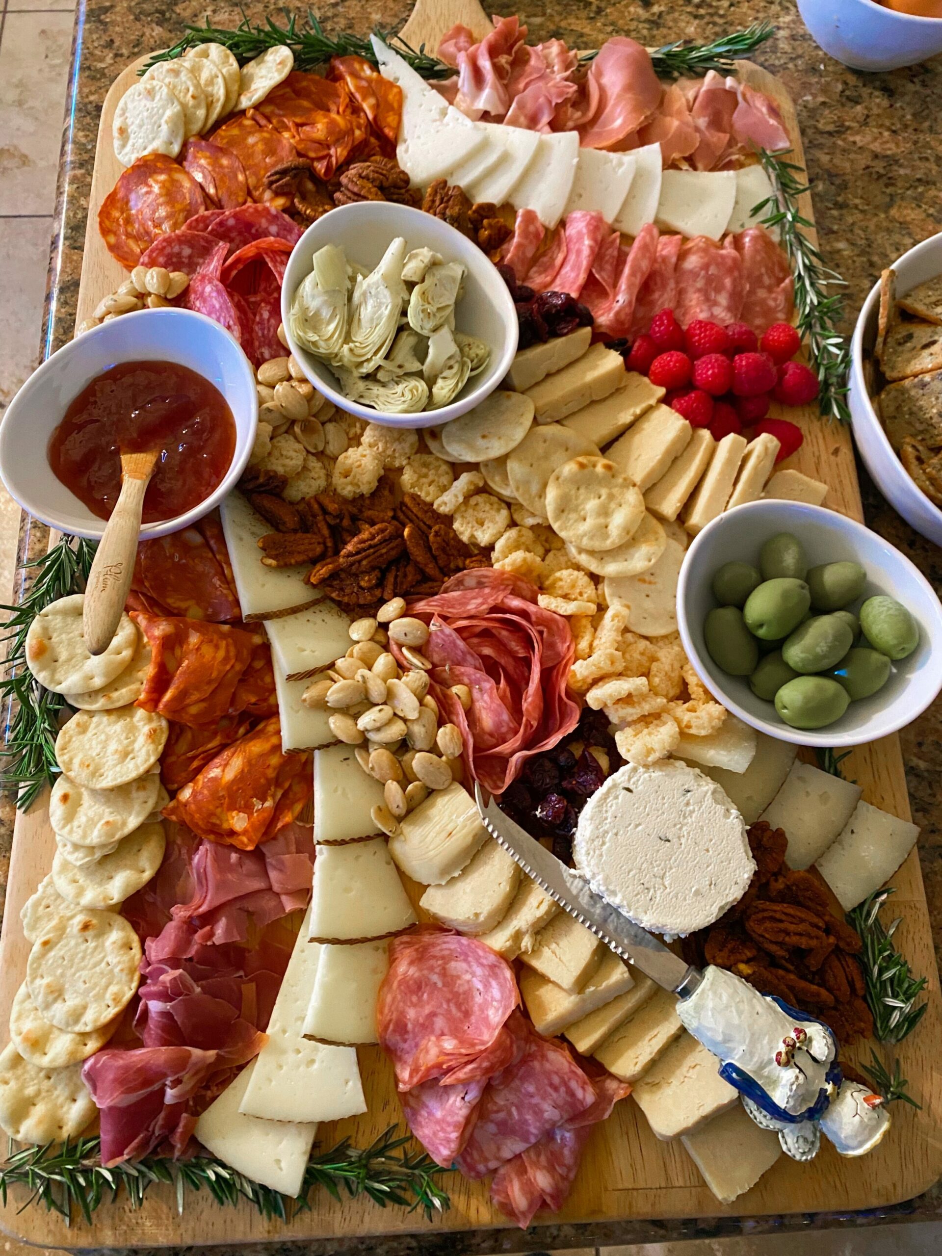and for dinner, we had a large charceuterie board, caviar + accompaniments, shrimp cocktail, and for dinner, beef tenderloin with horseradish mustard sauce, smoked turkey, maple brussels, and mashed candy potatoes.